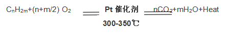 脫附下來的有機廢氣經阻火器并經主進風閥/旁通閥切換調節進入熱交換器,通過熱交換器的換熱,使溫度較低的有機廢氣加熱到起燃溫度。然后升溫后的有機廢氣進入氧化反應床,生成 H2O 和 CO2,使氣體溫度上升,再經熱交換器換熱,預熱脫附廢氣使溫度升高,并且高溫氣體降低,最后經排風機排放。